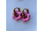 Elegantní kroužkové náušnice z chirurgické oceli pozlacené 18K zlatem s přívěskem ve tvaru kytičky v pudrově růžové barvě. Stylový a odolný doplněk, který rozzáří každý outfit –...